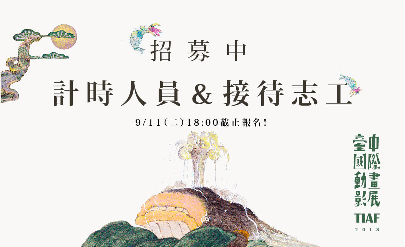 「2018臺中國際動畫影展」現場計時人員、接待志工招募中,報名自即日起至9/11(二)18:00止。...