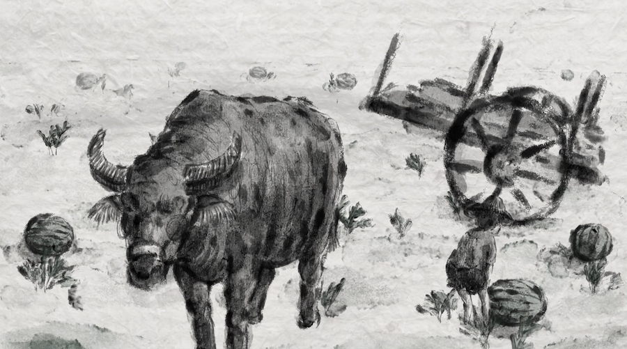 男孩第一次來到父親的故鄉,和家人一起參加阿嬤的喪禮。母親與親戚發生爭執後離去,面對眾人不友善的眼光,男孩與父親只能在遠處的河堤上,看著阿嬤被種在那片看不見的西瓜田裡,那是男孩第一次看見父親哭泣。